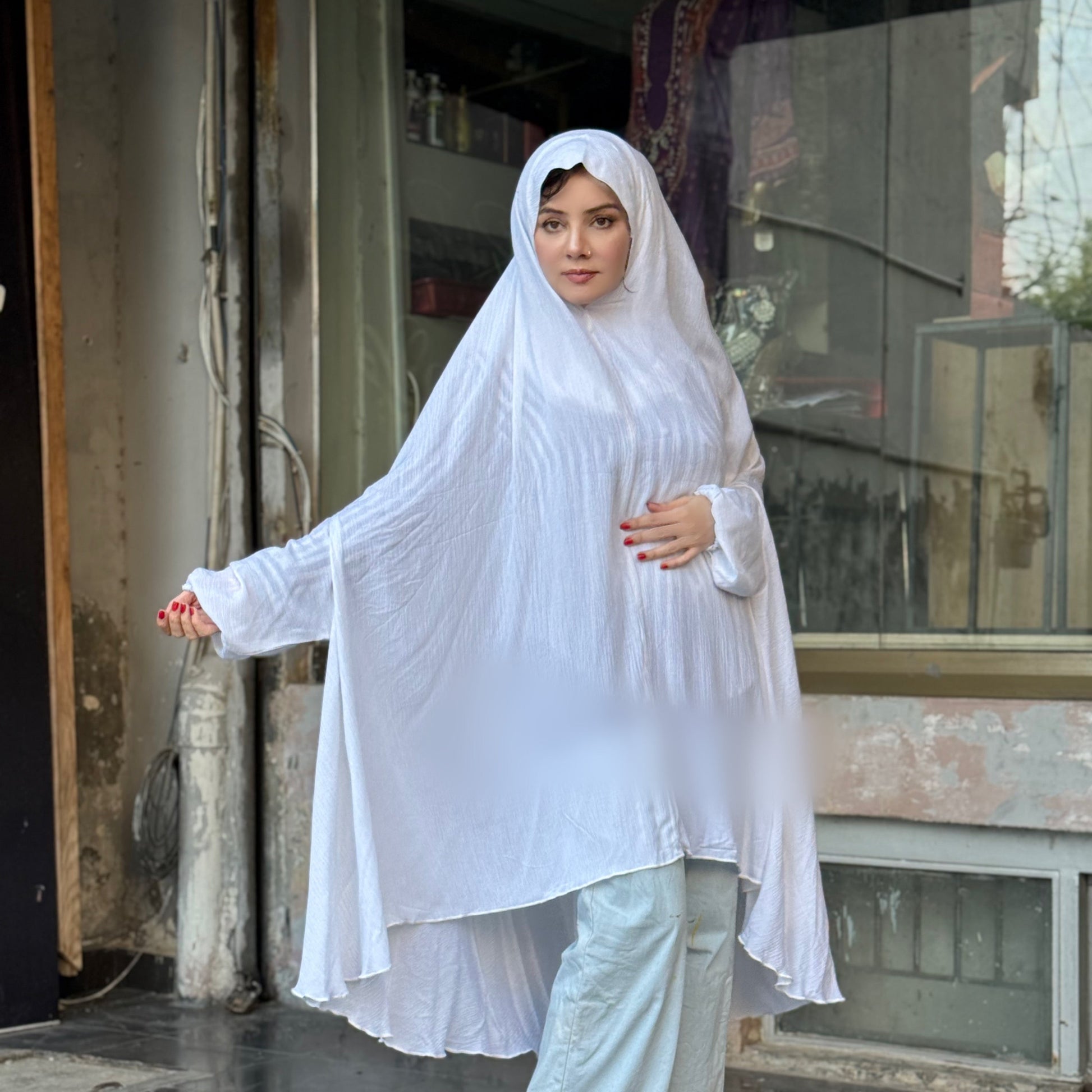 The flowing poncho-style cut drapes beautifully over the body, providing ease and comfort during prayer while ensuring a modest silhouette. With a naturally textured finish, the chadar maintains its elegance without needing ironing, making it ideal for both home and travel.